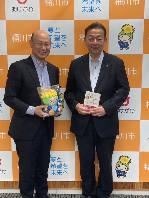 埼玉県桶川市の小野市長を表敬訪問し、市役所職員の人財の定着、笑認評価制度の導入、小中学校の笑認通知表についてお話しさせて頂きました。 - NEWS